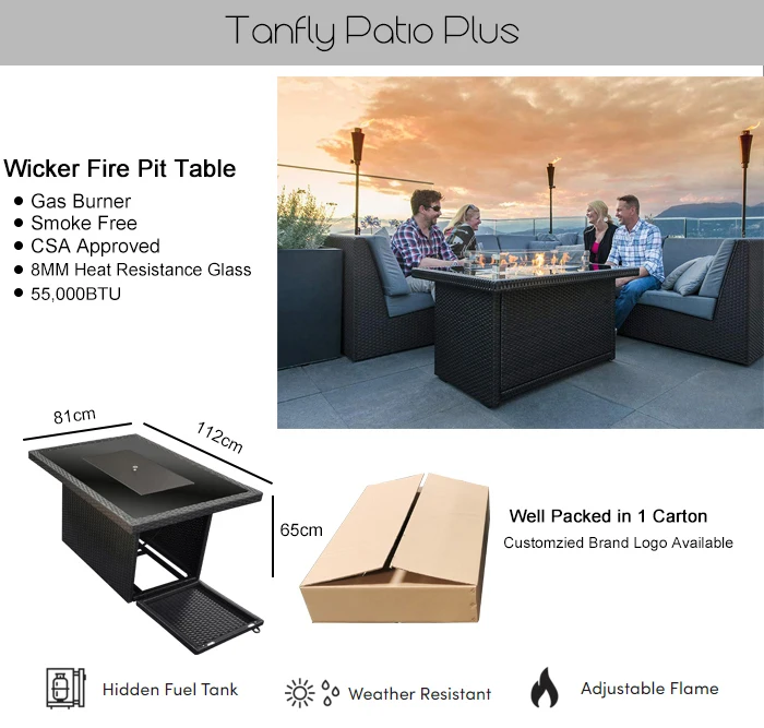 Fireplacの暖かさと雰囲気をもたらすこのEndlessTANFLY®プロパンガスファイヤーピットテーブルを使用して、パティオ、デッキ、または裏庭に移動します。 それはスタイリッシュな囲炉裏を備えています、このファイヤーピットはエレガントなシミュレートされた籐のテーブルbaを完備していますそれはそれをあなたのあらゆる屋外の生活空間のための魅力的な目玉にします。