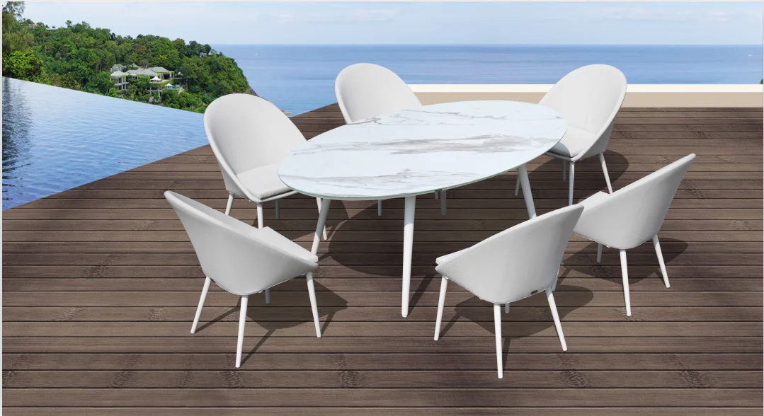 主要材料 | アルミf銅 紫外線抵抗力がある、 粉体塗装、強化ガラステーブルトップ |